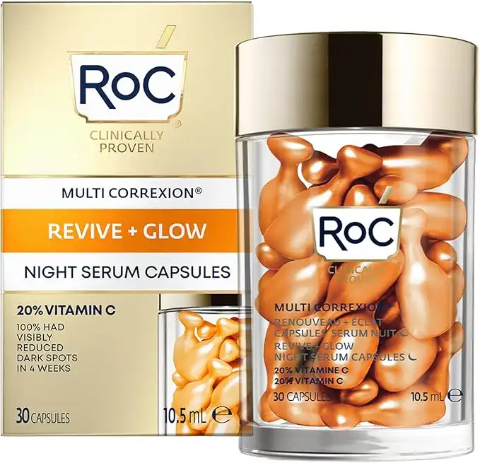 Roc - Multi Correxion Revive + Glow Night Serum Capsules - Anti-Wrinkle And Ageing - Vitamin C - Reduction Of Dark Spots - 30 Capsules — Price History & Tracker | DeserTracker