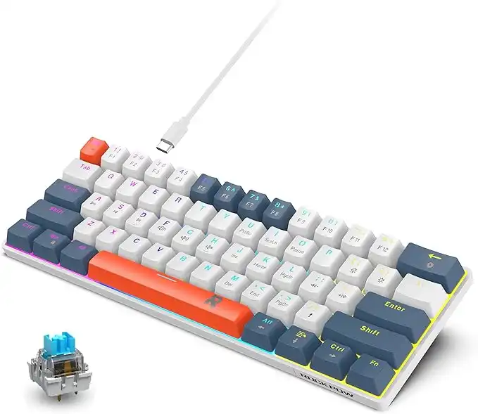 ROCK POW 60% Mechanical Gaming Keyboard, 61keys RGB Backlit Ultra-Compact Mini Keyboard, Waterproof Mini Compact Keyboard for PC/Mac Gamer, Typist, Trip Hot Swappable Blue Switch