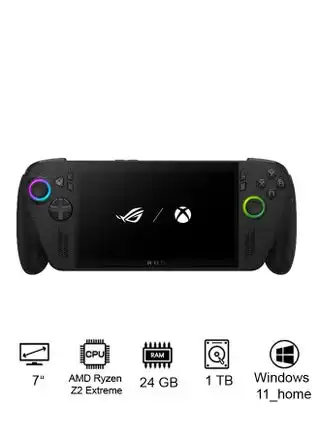 ROG Ally X XBOX Gaming Console With 7 Inch Full HD(1920X1080) Display 120Hz, AMD Ryzen Z2 Extreme Processor/24GB RAM DDR5/1TB SSD/AMD Radeon Graphics/Windows 11 Home/Dolby Speaker TYPE C & Finger Print Sensor/ English/Arabic Black