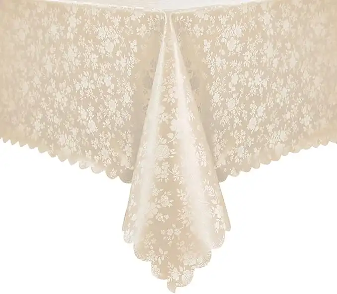 amazon.aeRomanstile Rectangle Vinyl Tablecloth,100% Waterproof Heavy Duty Oil Spill Proof Stain Resistant Plastic PU Table Cover with Flannel Backing for Kitchen, Dining (Rose Beige, 52 x 70)