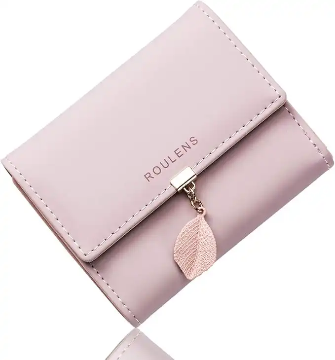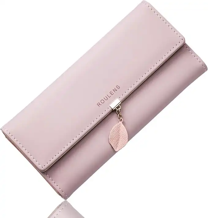 amazon.aeRoulens Ladies Purse, PU Leather Wallet for Women with RFID Leaf Pendant Zipper Coin Long Purse with Multiple Card Slots and Card Holders Phone Pocket, Pink-s, S