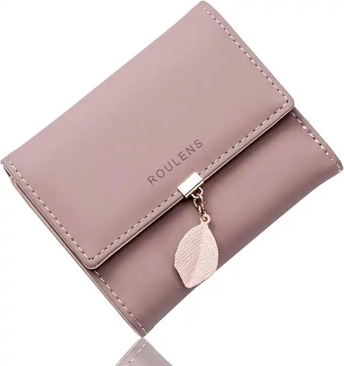 Roulens Ladies Purse, PU Leather Wallet for Women with RFID Leaf Pendant Zipper Coin Long Purse with Multiple Card Slots and Card Holders Phone Pocket, Deep Pink-s, S