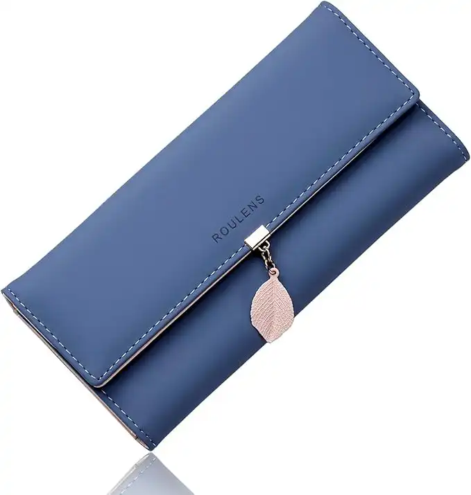 Roulens Ladies Purse, RFID Blocking PU Leather Wallet for Women Leaf Pendant Zipper Coin Purse with Multiple Card Slots and Roomy Compartment, A/Blue-l, Longue, Modern — Price History & Tracker | DeserTracker