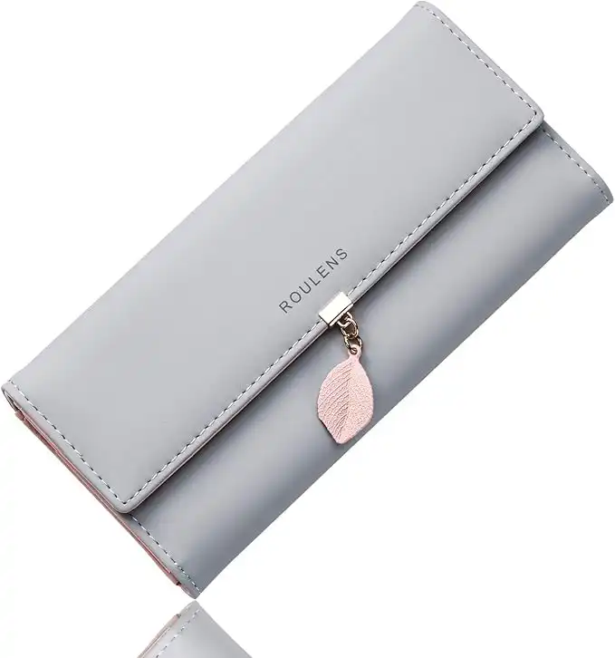 amazon.aeRoulens Ladies Purse, RFID Blocking PU Leather Wallet for Women Leaf Pendant Zipper Coin Purse with Multiple Card Slots and Roomy Compartment, A/Gray-l, Longue, Exquisite