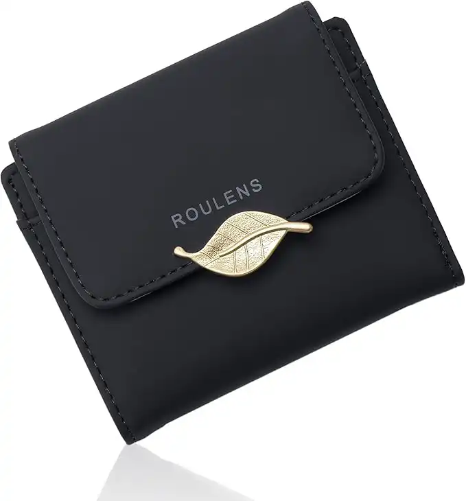 amazon.aeRoulens Wallet PU Leather Purse RFID Purse for Women with Leaf Pendant with Zipper, B-black, S, Elegant and with leaf pattern