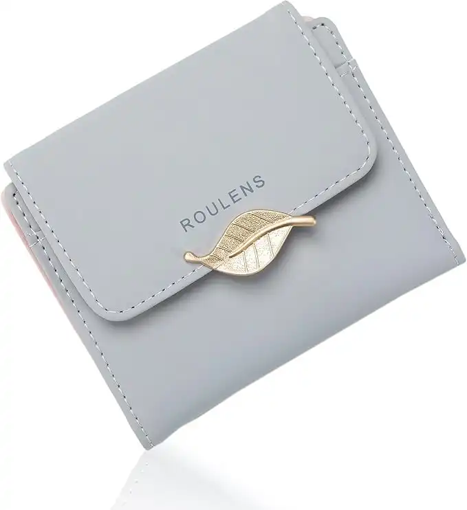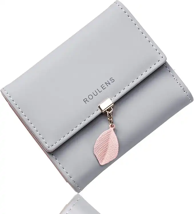 amazon.aeRoulens Wallet PU Leather Purse RFID Purse for Women with Leaf Pendant with Zipper, B-gray, S, Contemporary
