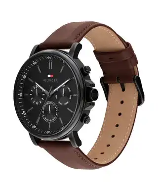 Round Multifunction Men'S Ionic Plated Black Steel Case Watch