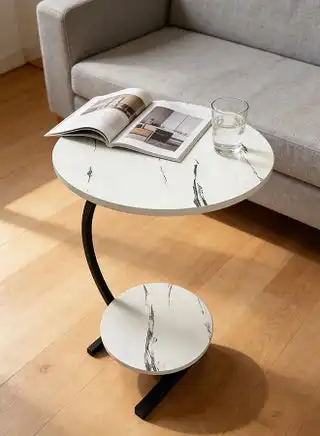Round Two Tier Coffee Table for Living Room, Side Table, Marble Like Finish, Easy Assembly, 60cm H x 40cm W, Black and White Color — Price History & Tracker | DeserTracker