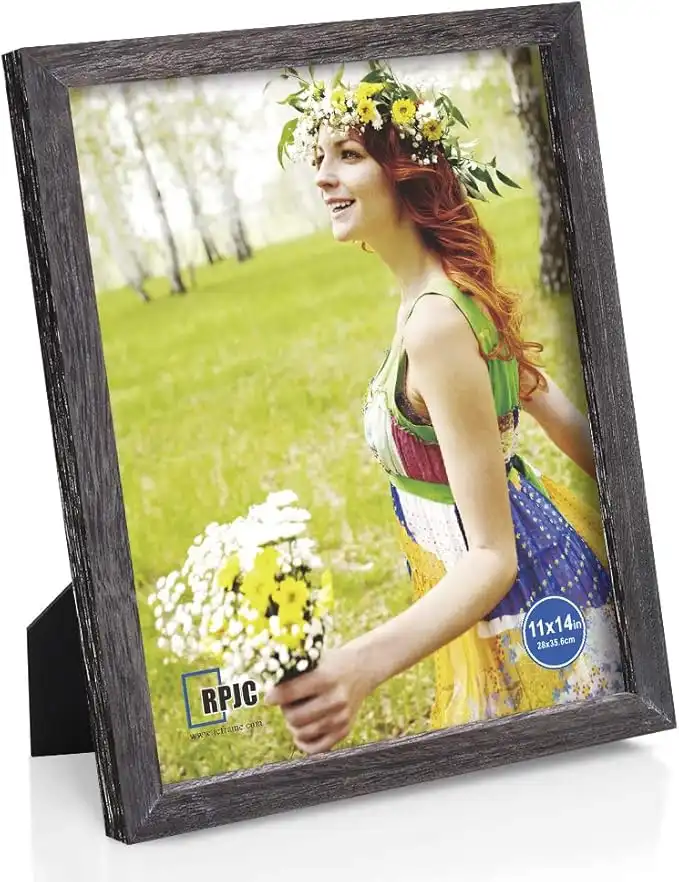 RPJC 11x14 inch Photo Frame Made of Solid Wood High Definition Glass Display Pictures for Wall Mounting Picture Frame with Stand Weathered Ash