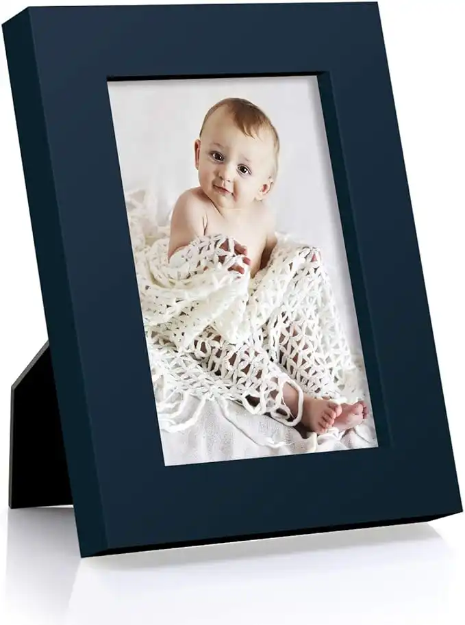RPJC 3.5x5 inch Picture Frame Made of Solid Wood High Definition Glass for Table Top Display and Wall Mounting Photo Frame Jazz Blue