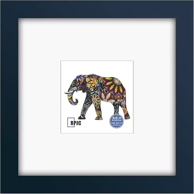 RPJC 8x8 Soild Wood Picture Frame with High Definition Glass Display Pictures 4x4 with Mat or 8x8 Without Mat for Wall Mounting Hanging Photo Frame Jazz Blue
