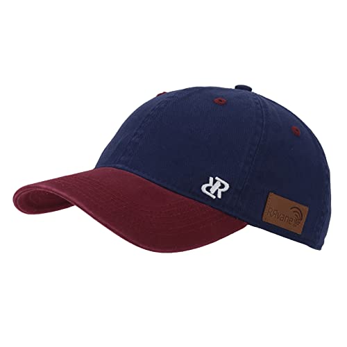 RRvane Vintage Washed Twill Cotton Dad Hat - Soft Unstructured Adjustable Baseball Cap, Navy/Burgundy, One size