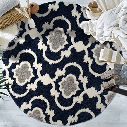 Rugshop Moroccan Trellis Indoor Shag Round Area Rug, 6' 6" Diameter, Navy