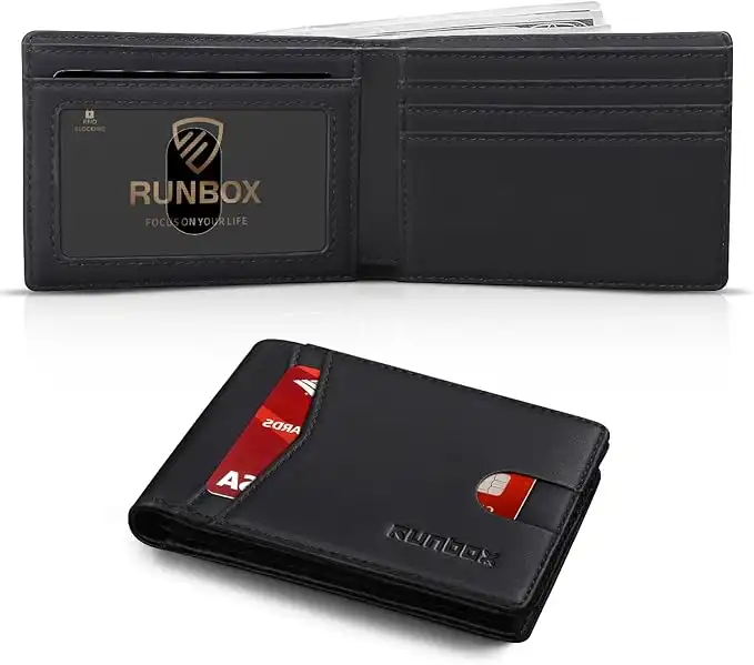 amazon.aeRUNBOX Wallet for Men Slim Credit Card Holder Leather RFID Blocking Small Thin Men's Wallet Bifold Minimalist Front Pocket Large Capacity Gift Box, Bicolor Black(one-pocket), 4.3 x 3 x 0.5 inches