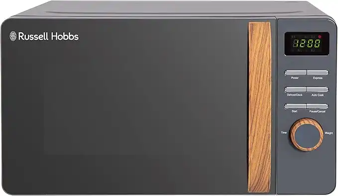 amazon.aeRussell Hobbs RHMD714G 17 L 700 W Scandi Grey Digital Microwave with 5 Power Levels, Wood Effect Handle & Dials, Clock & Timer, Automatic Defrost, Easy Clean, 8 Auto Cook Menus