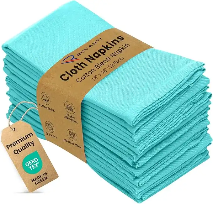Ruvanti Cloth Napkins Set of 12, 18x18 Inches Napkins Cloth Washable, Soft, Durable, Absorbent, Cotton Blend. Table Dinner Napkins Cloth for Hotel, Lunch, Restaurant, Wedding, Parties - Waterspout