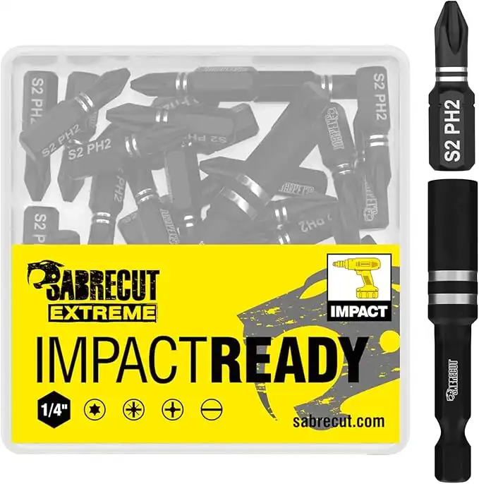SabreCut 21 x SCPA25_21PH 25mm PH2 Impact Screwdriver Driver Bits Set Single Ended Phillips No.2 Heavy Duty including Bit Holder and Storage Box — Price History & Tracker | DeserTracker