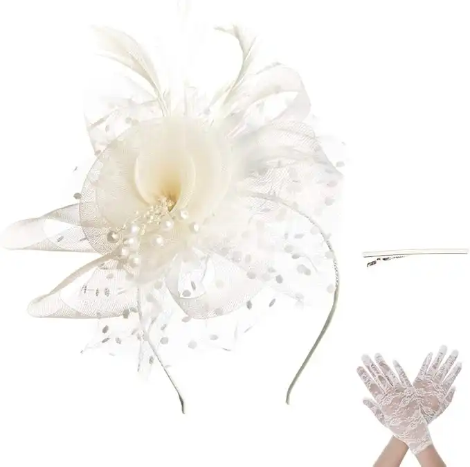 SAFERIN Women's Fascinators Feathers Tea Party Hat Veil Headband with Hair Clip for Cocktail Church