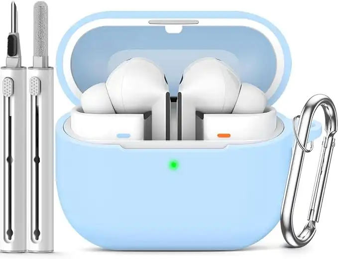 amazon.comFor Samsung Galaxy Buds 3 Pro / 3 Case with Cleaning Kit, Soft Silicone Drop and Smudge Resistant Case, Galaxy Buds 3 Pro /3Accessories with Keychain (pale blue)