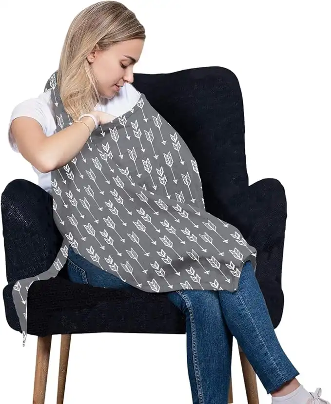 amazon.aeSan Francisco Baby Cotton Nursing Cover - Large Breastfeeding Cover with Built-in Burp Cloth & Pocket - Soft, Breathable, Chemical-Free, 360° Coverage, Gray Nursing Cover for Breastfeeding by
