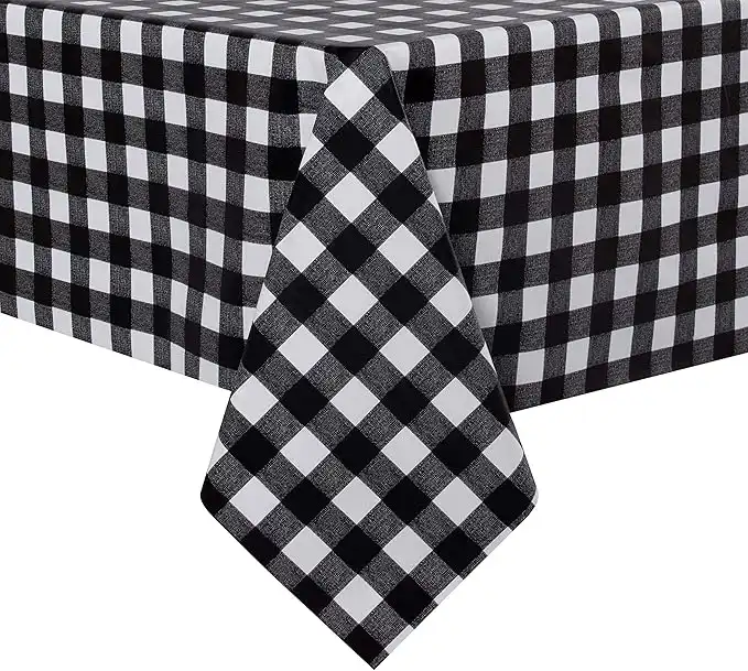 sancua Checkered Vinyl Square Tablecloth - 54 x 54 Inch - 100% Waterproof Oil Proof Spill Proof PVC Table Cloth, Wipe Clean Table Cover for Dining Table, Buffet Parties and Camping, Black and White