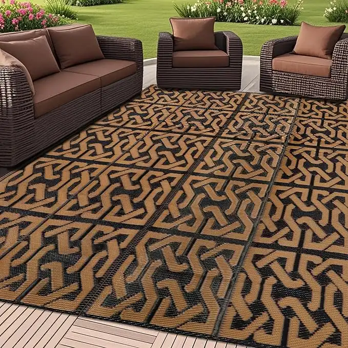 amazon.aeSAND MINE Reversible Mats, Plastic Straw Rug, Modern Area Rug, Large Floor Mat and Rug for Outdoors, RV, Patio, Backyard, Deck, Picnic, Beach, Camping, Trailer, Black & Brown, 5' x 8'