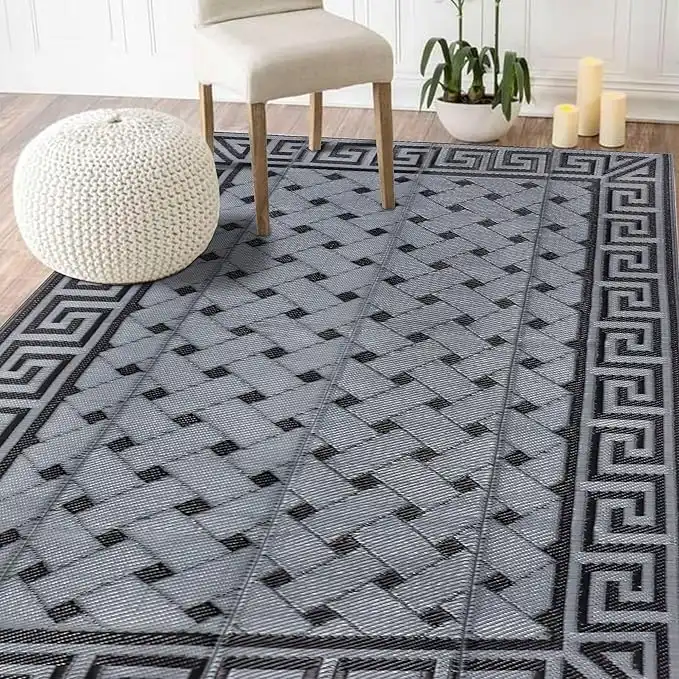 amazon.aeSAND MINE Reversible Mats, Plastic Straw Rug, Modern Area Rug, Large Floor Mat and Rug for Outdoors, RV, Patio, Backyard, Deck, Picnic, Beach, Trailer, Camping (5' x 8', Black & Grey)