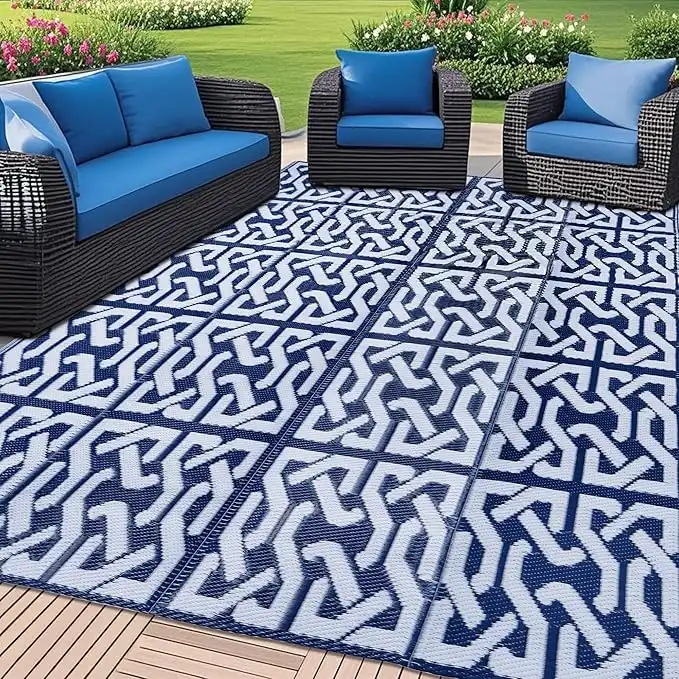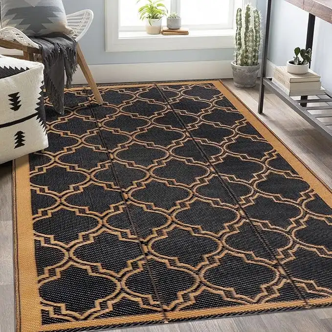 amazon.aeSAND MINE Reversible Mats, Plastic Straw Rug, Modern Area Rug, Large Floor Mat and Rug for Outdoors, RV, Patio, Backyard, Deck, Picnic, Beach, Trailer, Camping (5' x 8', Black & Brown Quatrefoil)