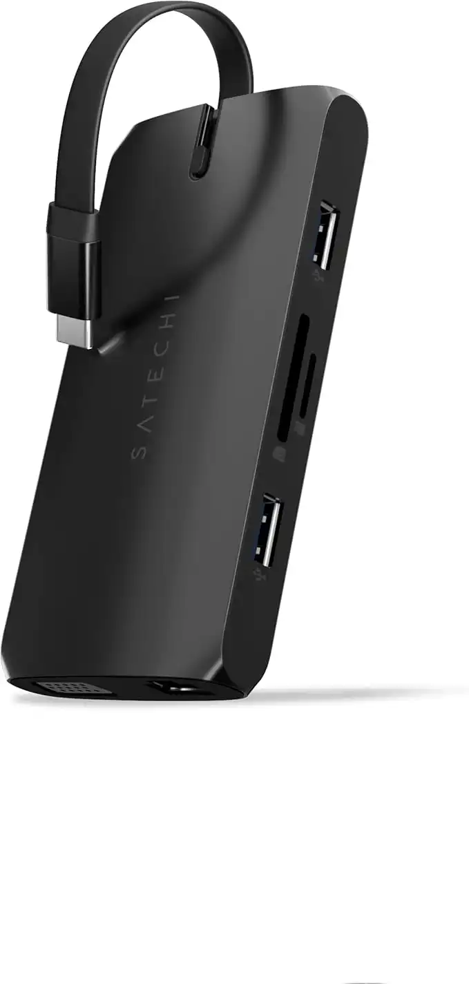 Satechi Docking Station 9-in-1, USB-C Hub Multiport Adapter, 4K@60Hz HDMI, 100W USBC PD Charging, USB C Data, 2x USB-A, Gigabit Ethernet, Micro/SD, VGA, for MacBookPro & Air, Windows – Black