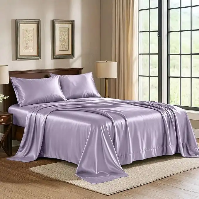 Satin Sheets Full [4-Piece, Lavender] Hotel Luxury Silky Bed Sheets - Extra Soft 1800 Microfiber Sheet Set, Wrinkle, Fade, Stain Resistant - Deep Pocket Fitted Sheet, Flat Sheet, Pillow Cases — Price History & Tracker | DeserTracker