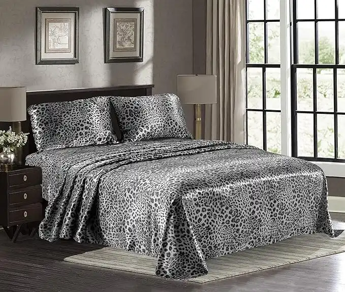 amazon.aeSatin Sheets Full [4-Piece, Silver Leopard] Hotel Luxury Silky Bed Sheets - Extra Soft 1800 Microfiber Sheet Set, Wrinkle, Fade, Stain Resistant - Deep Pocket Fitted Sheet, Flat Sheet, Pillow Cases