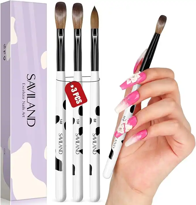 Saviland Acrylic Nail Brush Set: 3pcs Professional Nail Brush for Acrylic Powder Nails Kolinsky Acrylic Brush Wooden Handle Nail Art Brushes Nail Tools Kit Size 8/10/14, Christmas Women Gift Set — Price History & Tracker | DeserTracker