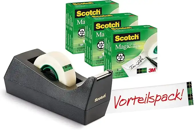 Scotch Desktop Tape Dispenser C38, Black + Scotch MagicTape, 19 mm x 33 m, 3 Rolls -Ideal For School, Home and Office — Price History & Tracker | DeserTracker