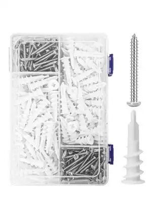 noon.comSelf Drilling Drywall Anchors and Screws Kit 240PCS – ZFHDBM Heavy Duty Wall Anchor Set with 120 Plastic Self-Tapping Anchors and 120 Sheetrock Screws for Hanging, Sheetrock, Curtain Rods, Picture Frames – 75LB Capacity