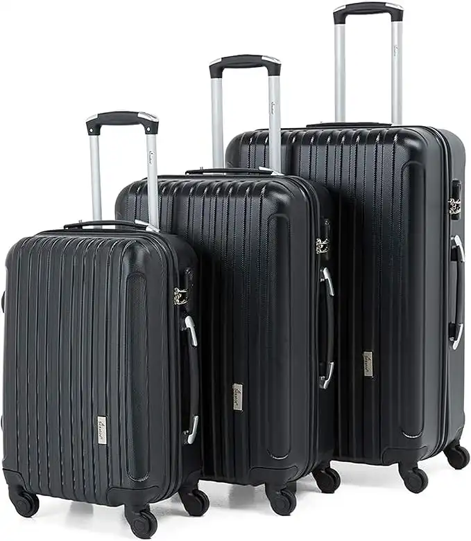 Senator Hard side 3-piece Suitcase on Wheels, Ultra Lightweight with Spinner Wheels 4, (Set of 3 (20/24/28), Black)