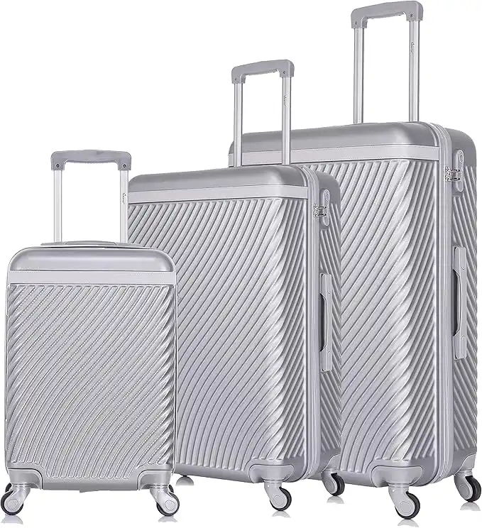 Senator Lightweight ABS Hard shell Travel Luggage Set with 4 Quite Spinner wheels KH1065 (Set of 3, Silver White)