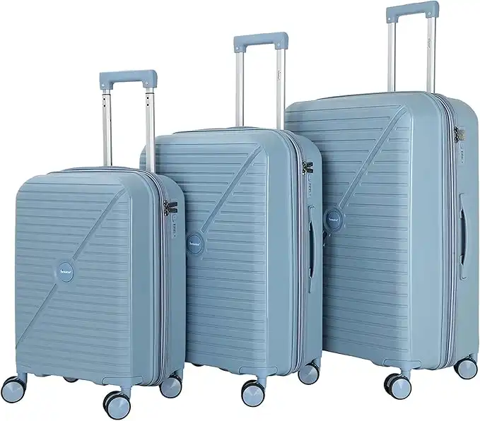 Senator Unisex Expandable PP Fashion Trolley Luggage Set Lightweight Hard Shell Spinner luggage with 360° Degree 4 Twin Wheel and Double Zippers KH1006 (Set of 3, Grey Blue)