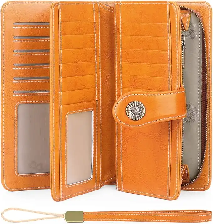 SENDEFN Ladies Purse,Genuine Leather with RFID Protection Large Capacity Women's Wallet, Cl_orange — Price History & Tracker | DeserTracker
