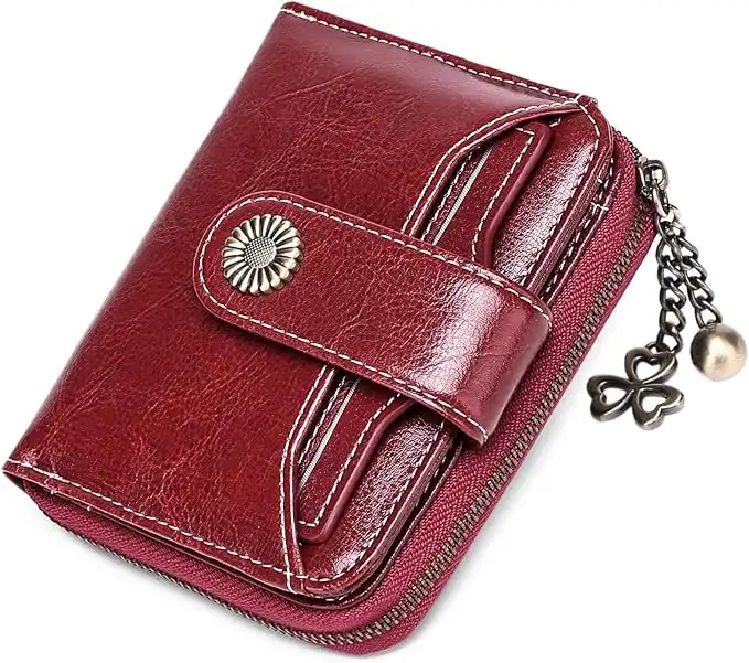 amazon.aeSENDEFN Small Womens Wallet Leather Bifold Card Holder RFID Blocking with Zipper Coin Pocket, 1-Wax-A-Pink, Classic