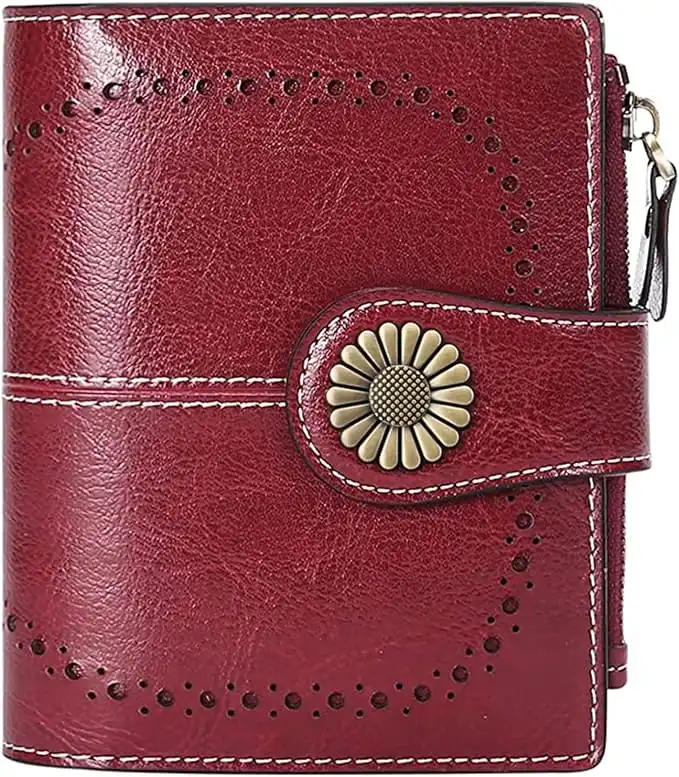 SENDEFN Small Womens Wallet Leather Bifold Card Holder RFID Blocking with Zipper Coin Pocket, 1-wax-red, Small, Classic