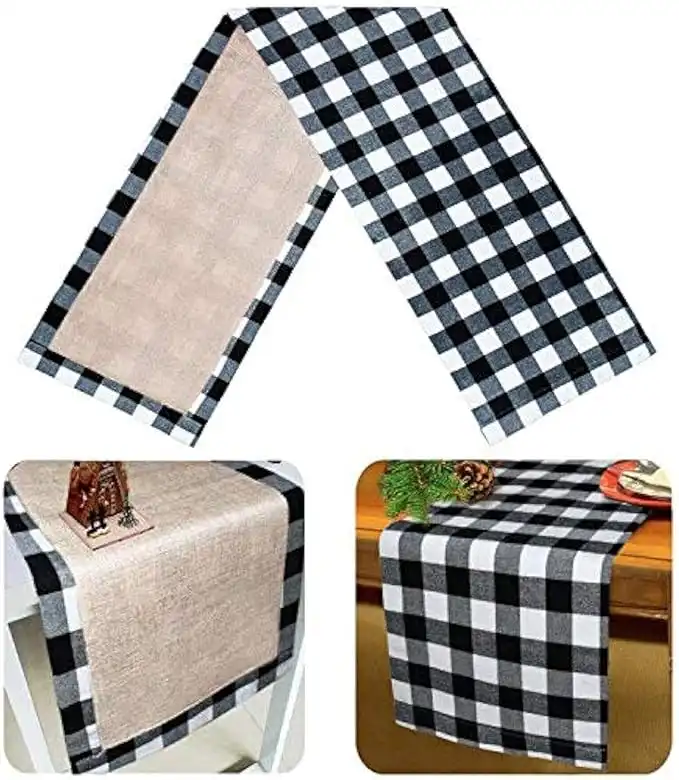 Senneny Christmas Large Table Runner Burlap & Cotton Black White Plaid Reversible Buffalo Check Table Runner for Christmas Holiday Birthday Party Table Home Decoration 14" x 72" White — Price History & Tracker | DeserTracker