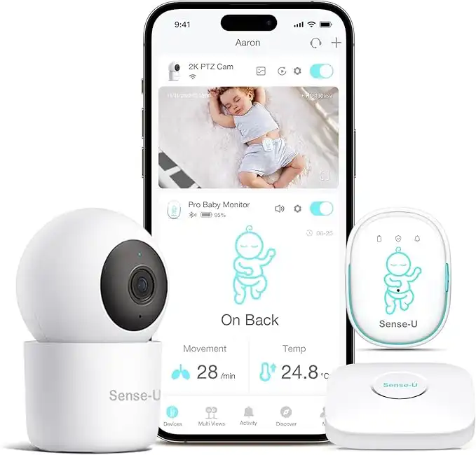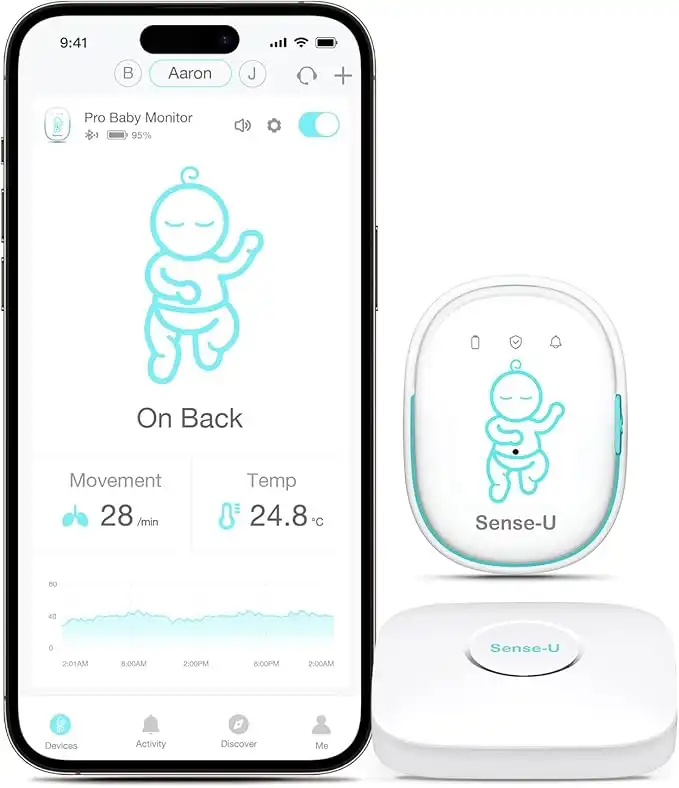 amazon.aeSense-U Smart Baby Monitor Tracks Baby's abdominal Movement, Feeling Temperature and Stomach Sleeping for Baby Safety with Audio Alarm on Smartphone