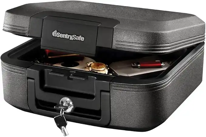 SentrySafe Charcoal Gray Fireproof and Waterproof Safe Box with Key Lock, Portable Chest for Money, Passport, 0.28 Cubic Feet, 6.6 x 15.4 x 14.3 Inches, CHW20221