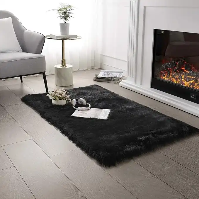 SERISSA Ultra Soft Faux Fur Area Rug Black Fluffy Rug Plush Chair Cover Seat Pad Fuzzy Carpet Furry Beside Rugs for Bedroom Floor Sofa Living Room 0.6m x 1.2m (Black) — Price History & Tracker | DeserTracker