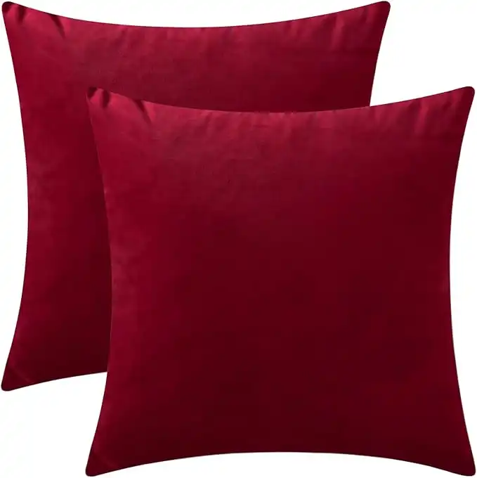 Set of 2 Comfortable Throw Pillow Covers for Bedding, Decorative Accent Cushion Sham Cases for Couch Sofa, Soft Solid Velvet with Zipper Hidden - 14"x14", Deep Red