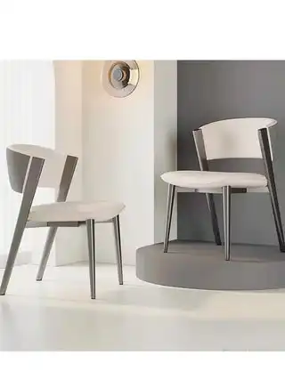 noon.comSet of 2 Multipurpose Use Italian Light Luxury Dining Chairs Minimalist Design Curved Upholstered Leather Backrest Accent Chairs Comfortable Restaurant Chairs Durable Carbon Steel Legs Living Room Chairs 44x50x80 cm