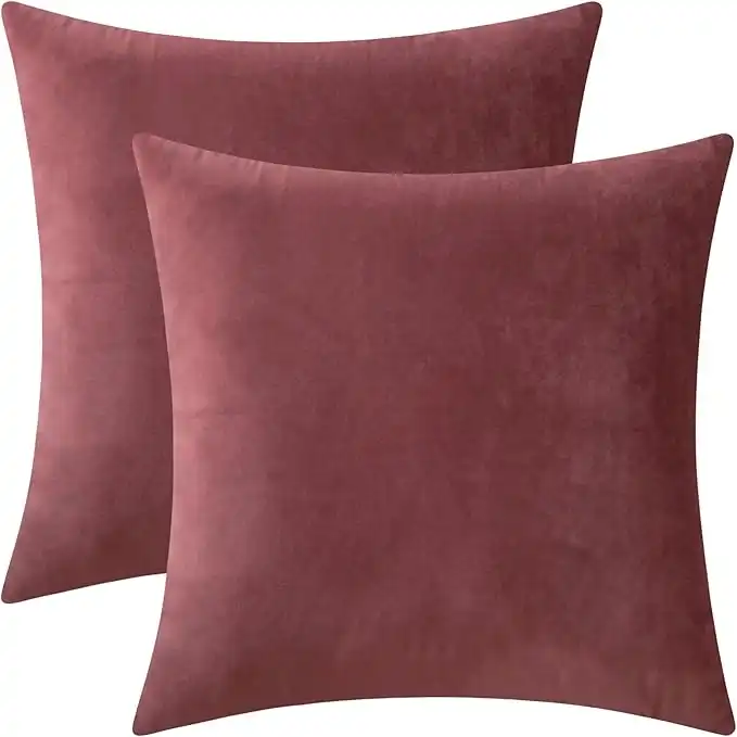 Set of 2 Velvet Throw Pillow Covers for Couch and Bed - 14"x14", Mauve Dusk