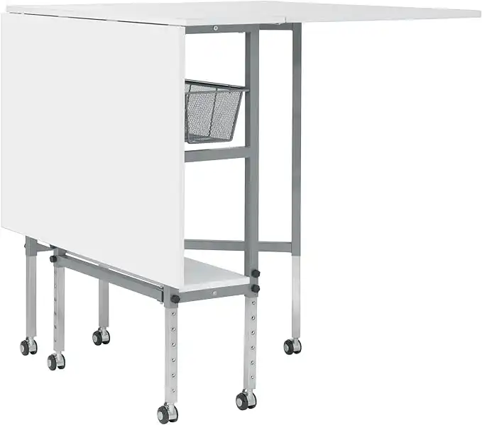 Sew Ready Hobby and Cutting Table - 58.75" W x 36.5" D White Arts and Crafts Table with 2 Mesh Storage Drawers, Silver/White