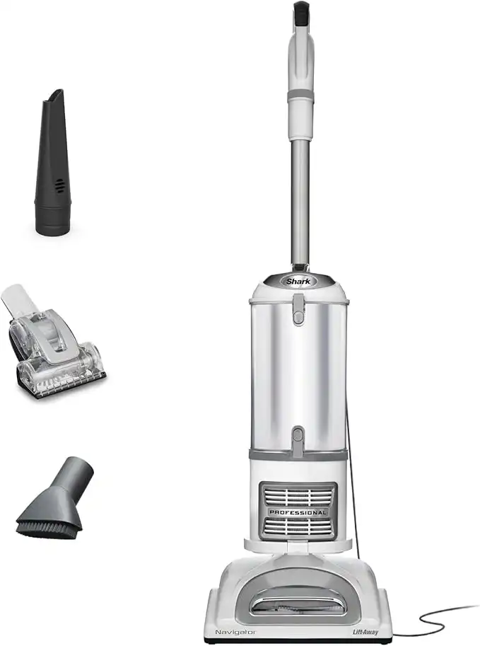 Shark NV356E 31 Navigator Lift-Away Professional Upright Vacuum with Swivel Steering, HEPA Filter, XL Dust Cup, Pet Power, Dusting Brush, and Crevice Tool, Perfect for Pet Hair, White/Silver