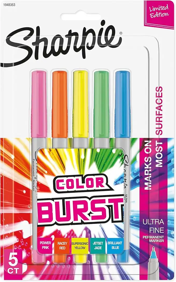 SHARPIE Color Burst Permanent Markers, Ultra-Fine Point, Assorted, 5/Pack (1948353)
